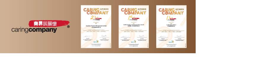 佳定物業管理有限公司榮獲香港社會服務聯會頒發20年Plus「商界展關懷」標誌,而旗下的安全護衛有限公司及佳保護衛則分別獲頒15年Plus及10年Plus「商界展關懷」標誌。